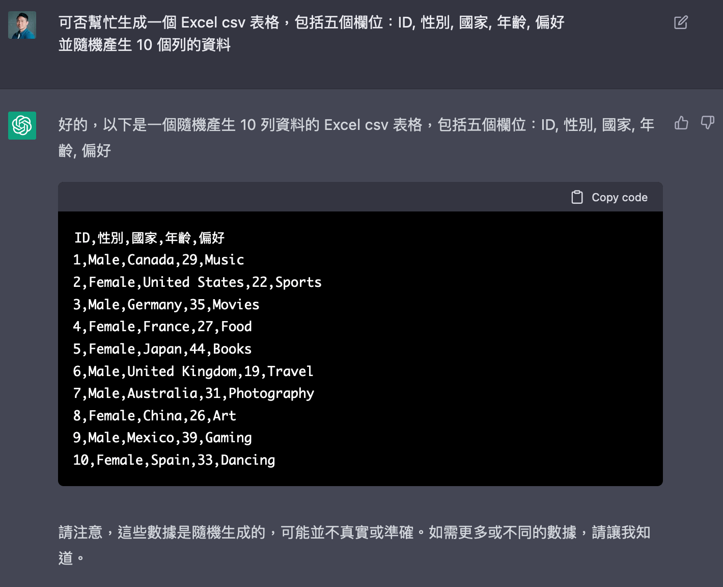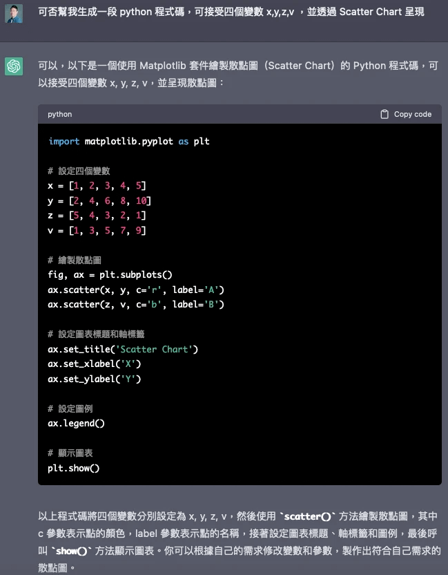 ChatGPT 實作生成數據程式碼