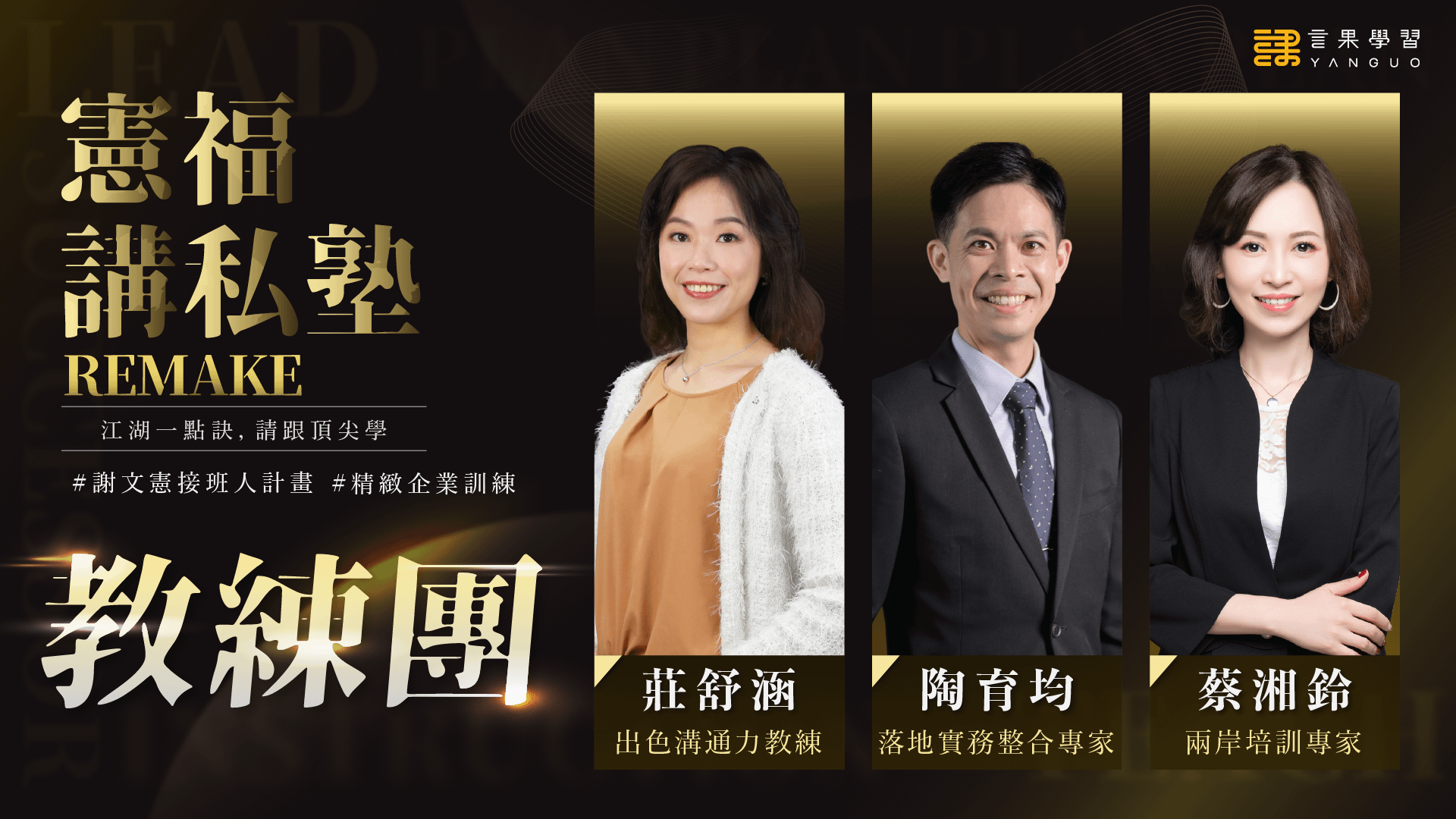 本次活動將邀請三位講私塾學長姊擔任教練,他們曾經是憲福講私塾的學員之一,目前都已經是百大企業指定的授課講師,將在七月份的線上輔導日與驗收日,從他們的視角提供本班學員來自第一線的指導,跟前輩學習,如何在課堂當中學到更多,應用更多,成就更多。